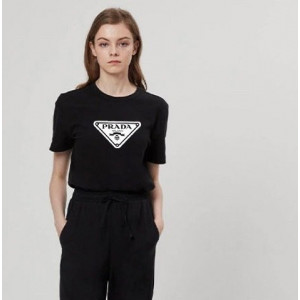 • 프라다 화이트 트라이앵글 로고 반팔티