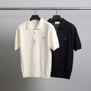 • 아미 스몰 하트 로고 카라 반팔 니트