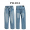 프라다 중청 스트링 스토퍼 데님 와이드 청바지