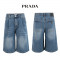 프라다 중청 핀턱 히든밴드 6부 버뮤다 청 반바지